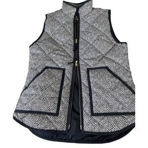 EUC J. Crew Excursion HOUNDSTOOTH Quilted Puffer Vest Gray Black Size XS