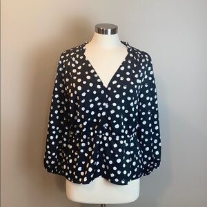 EUC worn 2x. A minor pull on the front of the blouse, but is not detectable due to the pattern of the shirt.