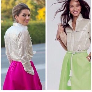 Shiny JCrew Women’s blouse size 4.... this button up is incredibly stunning!!! It’s stylish and chic!!! A total show stopper!!! It’s in excellent condition and its absolutely perfect for a day at the office under a blazer to add a little sparkle or alone with a pencil skirt and pointed toe pumps for dinner!!!