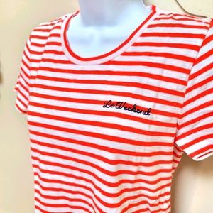 EUC J Crew sz Small S “Le Weekend" Chain-stitch Graphic Red Striped T-shirt NWT