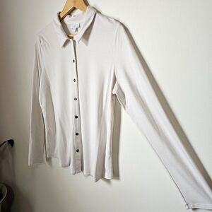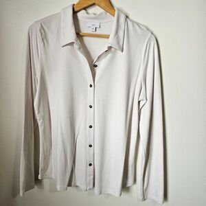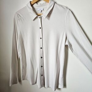 EUC J JILL BONE/OFF WHITE BUTTON DOWN LONGSLEEVES SOFT TOP SIZE MEDIUM