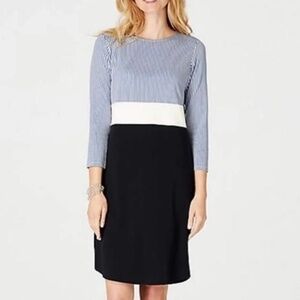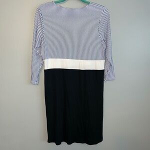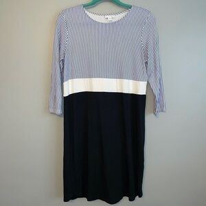 J. JILL Striped Color Block Jersey Knit Cotton/Modal Blue Block White Dress