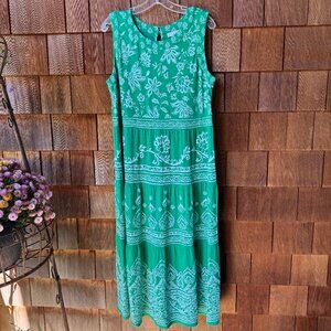 EUC J. Jill Green Sleeveless Floral Print Maxi Dress in Women's Large Petite