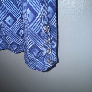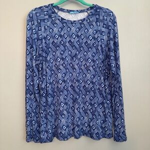 EUC J. McLaughlin Jana Long Sleeve Top in Blue Geometric Print Size Large