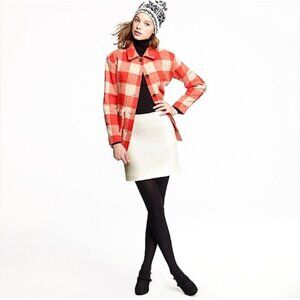 RARE J Crew wool coat in an orangey red buffalo plaid. Such a high quality amazing piece. In like new condition!