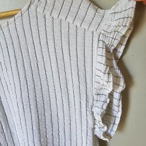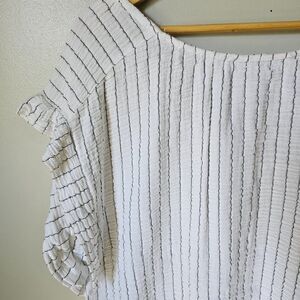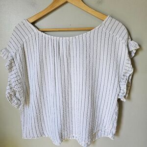 EUC JOIE PIN STRIPED SPLIT V NECK TASSEL ACCENT LOOSE FIT TOP SIZE L