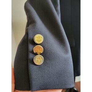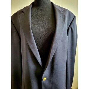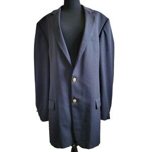 EUC JOSEPH FEISS MEN NAVY BLUE GOLD BUTTON 100% WOOL SPORT COAT BLAZER 44 X-TALL