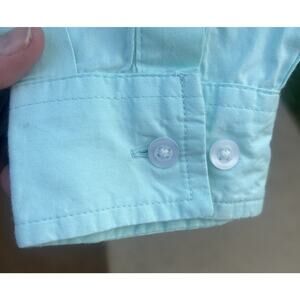 This EUC Jack Thomas Boys Button Down Shirt in size Medium (10-12) is a solid green cotton shirt with long sleeves and a collared neckline. It features a button-down collar and is designed for boys, making it suitable for various occasions such as travel, parties, or casual wear. There is a small snag on the back left side. It can be seen in the last photo. I allow offers!