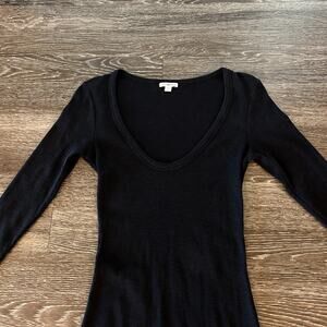 EUC James Perse Thermal Long Sleeve Maxi Dress Black Cotton Scoop Neck Rib Knit