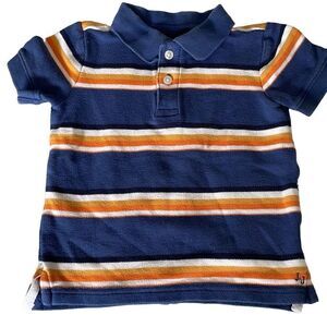 EUC Janie & Jack SS Blue Orange Striped 2-Button Polo Shirt - 18-24M