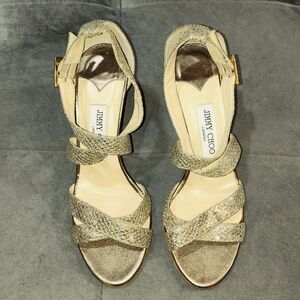 EUC Jimmy Choo Gold Glitter Louise Strappy Sandals Size 38.5