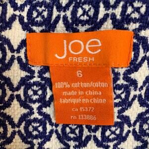 EUC Joe Fresh Blue and White Print Cotton Short Sleeve Lined Dress Size 6