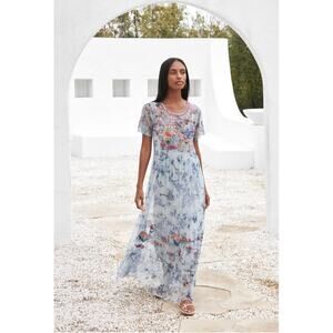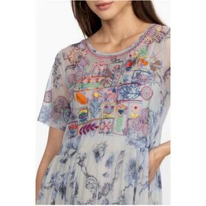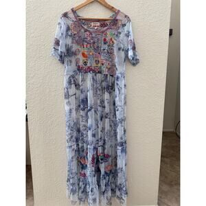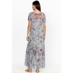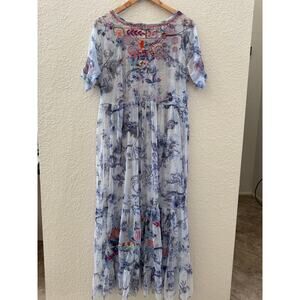 EUC Johnny Was $350 Logan Tierred Embroidered Mesh Maxi Dress