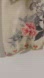 Semi sheer antique white adorned with embroidered pink, grey tone florals
