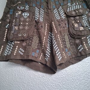 EUC Johnny Was Olive Embroidered Draper Shorts Size 2