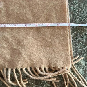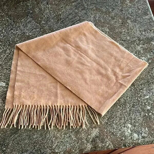 tan camel color scarf with fringe ends, lambswool, tag attached