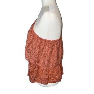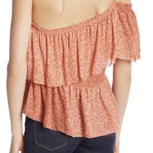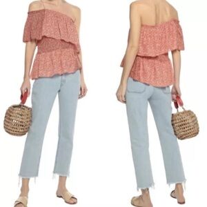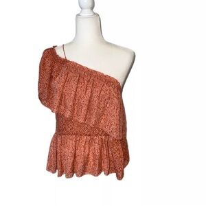EUC Joie Jokinda 💯 Silk One Shoulder Ruffle Top Cinnamon Leaf Print Oversize XS