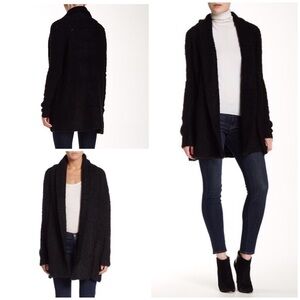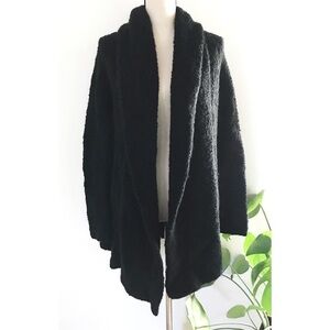 In great pre-loved condition Nubbly textured knit open long black cardigan from Joie in size small. Pockets on the side. No flaws. Oversized style so probably can fit a medium too. Shawl collar - Long sleeves - Open front - Knit construction - Approx. 32" length.