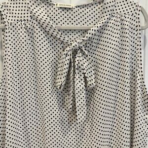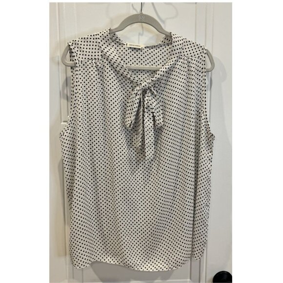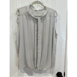 EUC Jon & Anna 3xl Sleeveless White and Black Polka Dot Tie Neck Blouse Classic