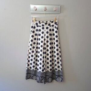 EUC Julietta ecru & black polka dot & floral jacquard print pleated culottes M L
