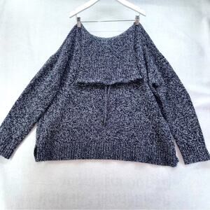 EUC Karen Kane Drawstring Cowlneck Sweater Navy Blue and White size Large