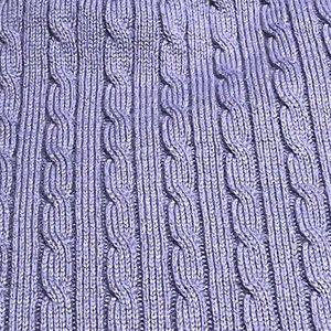 Excellent Used Condition. Karen Scott mock turtleneck sweater. Gorgeous lilac purple. Size marked Small but fits like a petite size so listed as "petite." Cable knit pattern weave. Measurements: Length: 21 1/2" (shoulder to hem). Chest = 17" (pit to pit). Sleeve = 22" Long. Hem = 16 1/2" Wide. 100% cotton. Machine wash cold, gentle. Tumble dry low. From illness/smoke/pet-free home. Select other items from my closet, bundle & save on shipping!