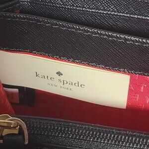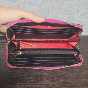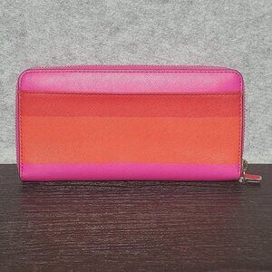 EUC Kate Spade Bold Color Striped Zip-around Wallet Red Pink Black White Leather