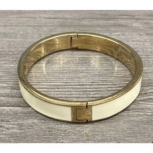 EUC Kate Spade Cream Enamel Spade Punch Hinged Bangle Bracelet Gold-Tone size 7