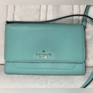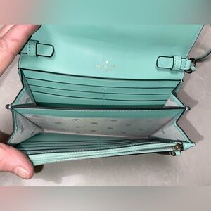 EUC Kate Spade Harlow Wallet on a String Aqua Bloom