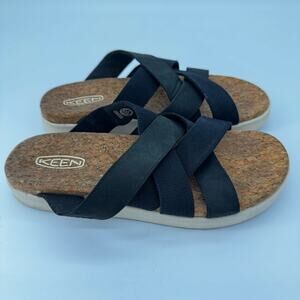 EUC Keen Elle Mixed Slide Sandal Black Leather Birch 9 Womens