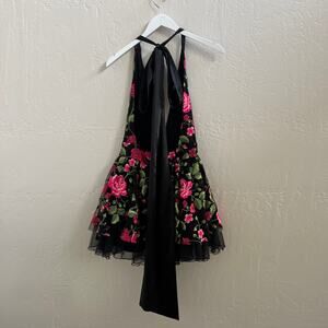 EUC Kikiriki Black Floral Embroidered Halter Tulle Mini Dress