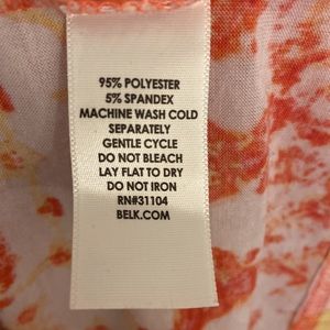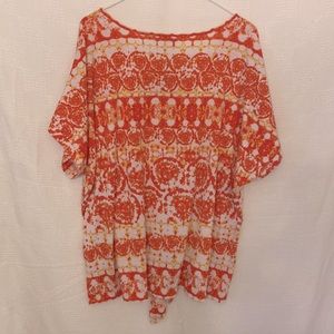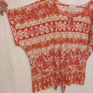 Kim Rogers Plus short sleeve tie front top, size 2x. Great summer colors in a tie-dye striped pattern, front tie, cute keyhole neck detail.