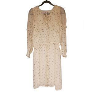 EUC Koche Collective White Polka-dot Frilly Ruffles Chiffon Dress French 40 US M