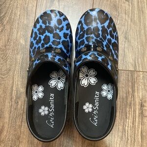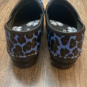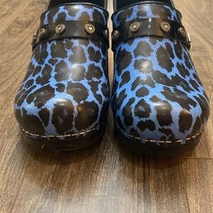 EUC Koi by Sanita Valerie Blue Leopard Print Leather Platform Mule Clog Size 39