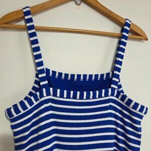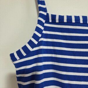 EUC LIKE NEW LOFT STRIPED BLUE AND WHITE TANK MAXI DRESS SLIT SIDE SIZE 10 / M