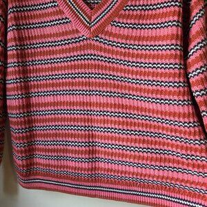 EUC LIKE NEW NIC + ZOE STRIPED V NECK COTTON BLEND SWEATER SIZE XL