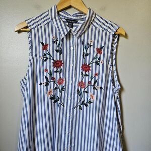 EUC LIKE NEW TERRE BLUE 100% LYOCELL STRIPED EMBROIDERED BUTTON DOWN DRESS SZ L