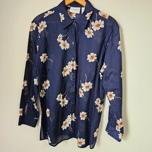 EUC LIKE NEW LIZ CLAIBORNE BLUE WHITE FLORAL BUTTON DOWN SHIRT SIZE M