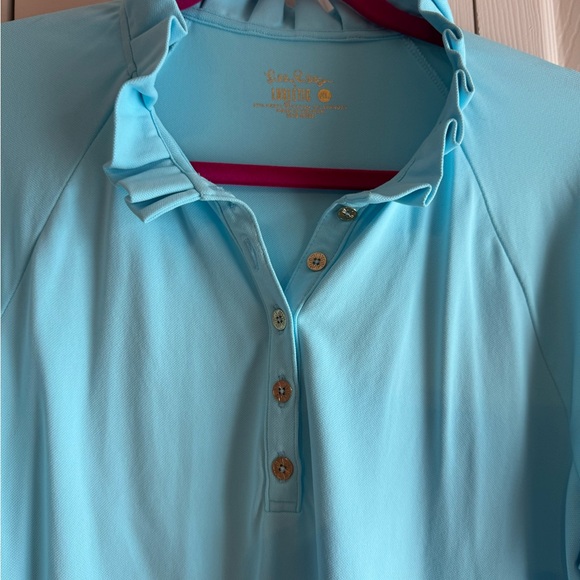 EUC LILLY PULITZER Bali Blue Meryl Nylon Pique Polo UPF 50+ Long-Sleeve - Size XL