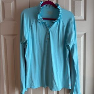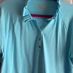 EUC LILLY PULITZER Bali Blue Meryl Nylon Pique Polo UPF 50+ Long-Sleeve Size XL