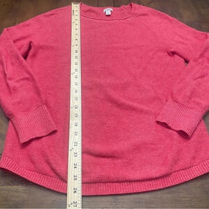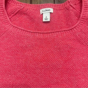 EUC LL Bean Textured Cotton Sweater. Size Small, red. 80% cotton, 20% recycled cotton. Machine wash, lay flat. Slightly fitted and falls to hip. See pictures for approximate measurements. Softly textured with cool cotton, this pullover sweater is destined to be an all-year staple. Not only will it look good on you, it's good for the earth with 20% recycled cotton yarns. Open neckline has a rolled edge. Raglan sleeves with ribbed fashioning. Smoke free home. Retail $60
