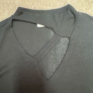 EUC LNA Women's XL Black V-Neck Long Sleeve Top with Cut-Out Detail