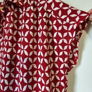 EUC LOFT RED WHITE GEOMETRIC FLORAL PRINT BUTTON DOWN CAP SLEEVES TOP SZ SMALL