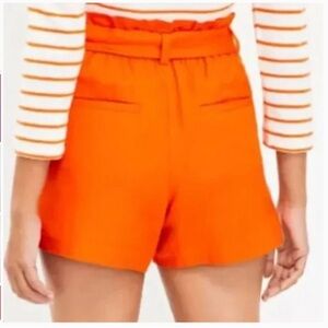 LOFT linen blend, tie waist, high rise, pleated front, shorts in orange, size medium. Gently used excellent condition. 4” inseam. No rips, stains or tears and fast to ship out.