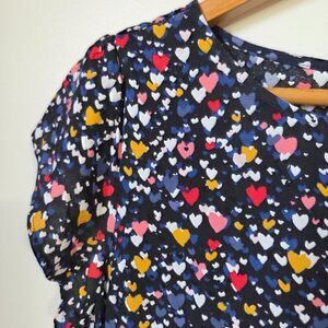 EUC LOFT HEARTS PRINT COLORFUL TOP BABYDOLL STYLE SIZE SMALL