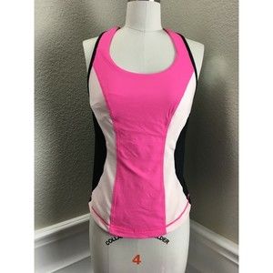 This is an excellent used condition Lululemon Cardio Kick Tank in Pinkelicious / Parfait Pink / Black. Size 6.