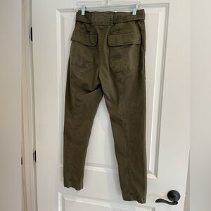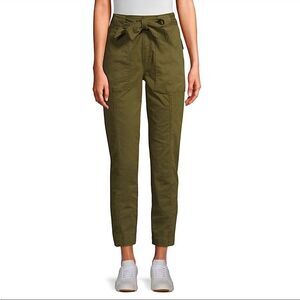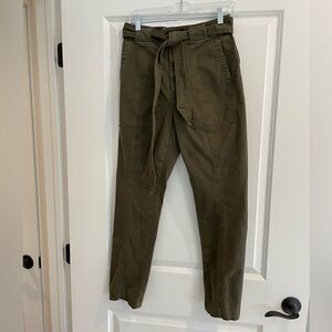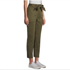 This military-inspired pant is feminized with a tapered, cropped leg and a tie belt at the waist.
