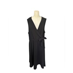 EUC Lane Bryant Black A-Line Midi Dress 18/22 Belt Formal Sleeveless