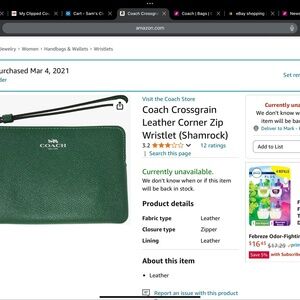 EUC, Large Coach phone wallet, Coach corner zip wristlet, both in Shamrock green