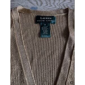 EUC Lauren Ralph Lauren Metallic Gold Ribbed Cardigan - Size M $150